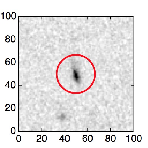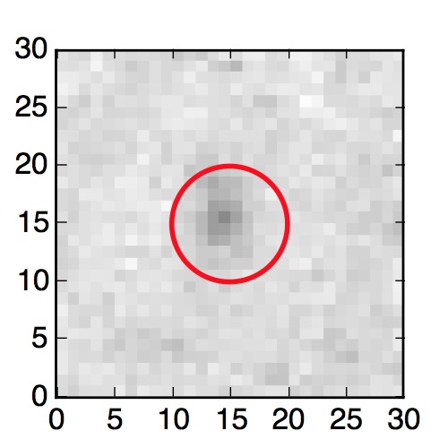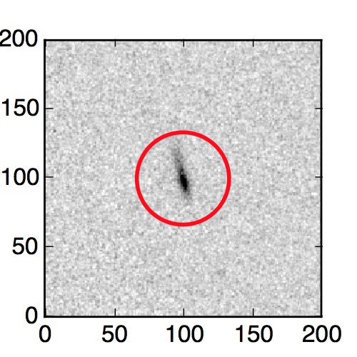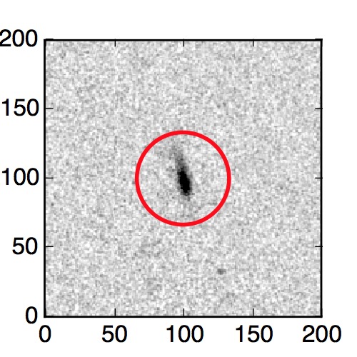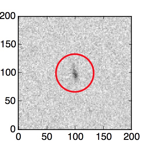The red circle in the various panels is 1" in radius. The images are 6"x6".