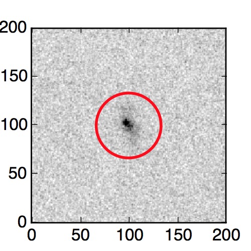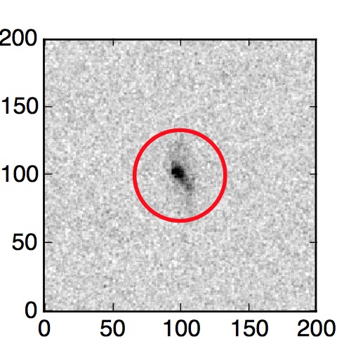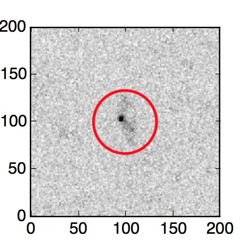 The red circle in the various panels is 1" in radius. The images are 6"x6".