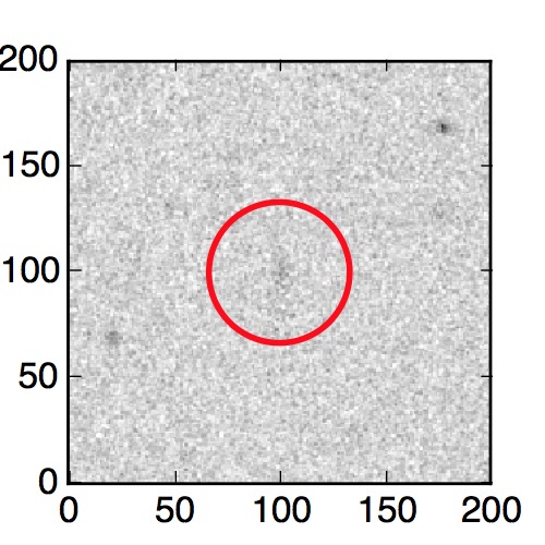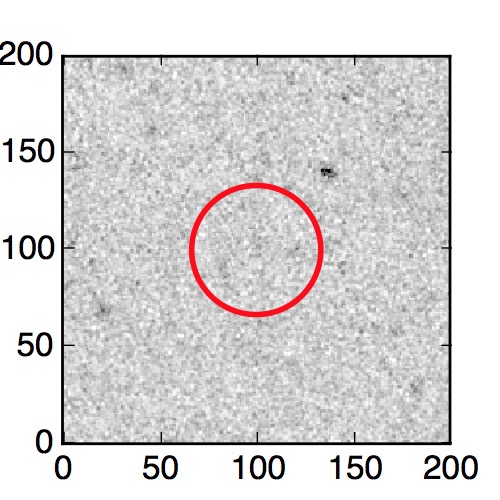The red circle in the various panels is 1" in radius. The images are 6"x6".
