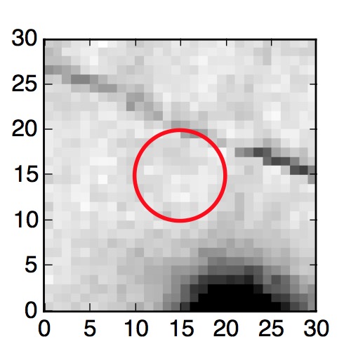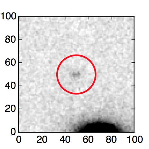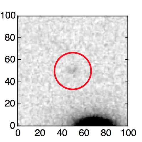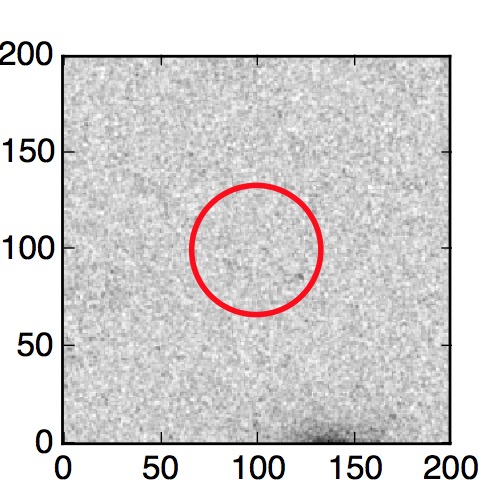 The red circle in the various panels is 1" in radius. The images are 6"x6".