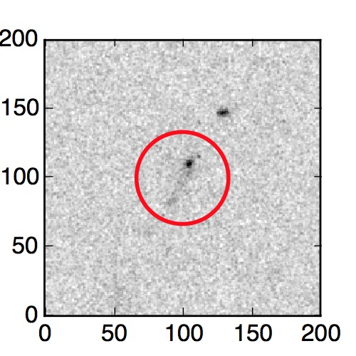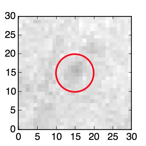 The red circle in the various panels is 1" in radius. The images are 6"x6".