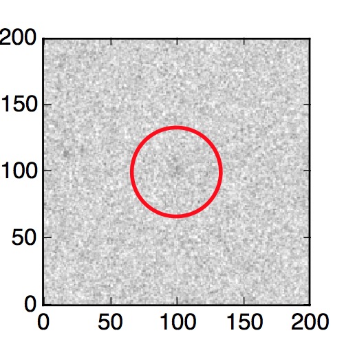 The red circle in the various panels is 1" in radius. The images are 6"x6".