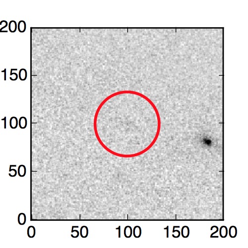 The red circle in the various panels is 1" in radius. The images are 6"x6".