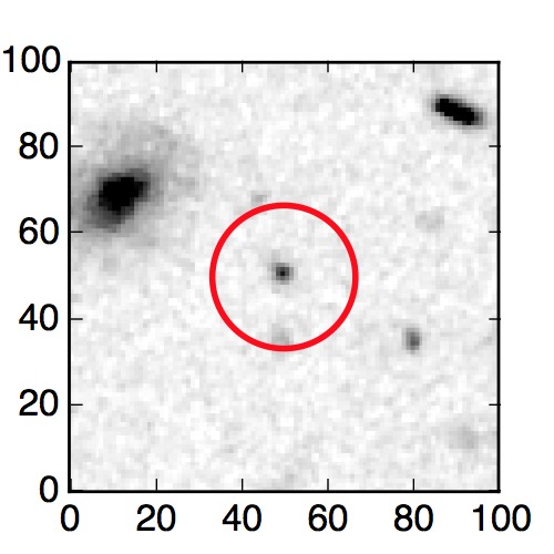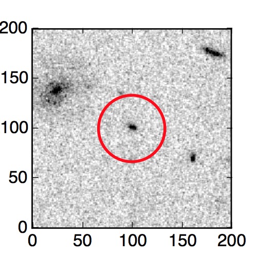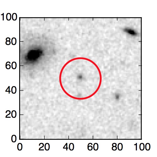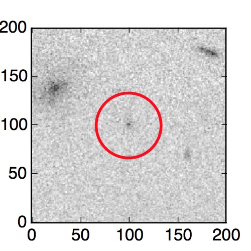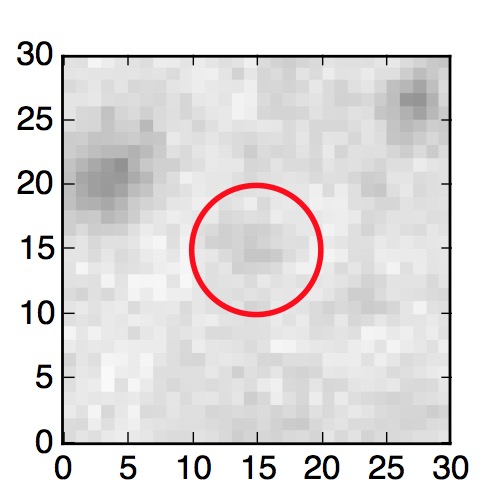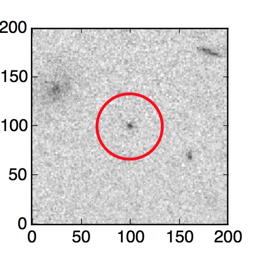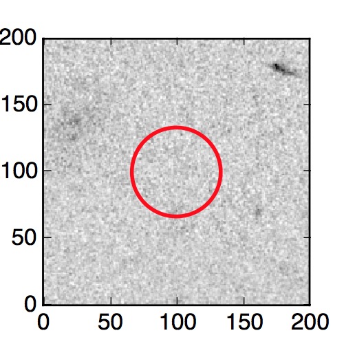 The red circle in the various panels is 1" in radius. The images are 6"x6".