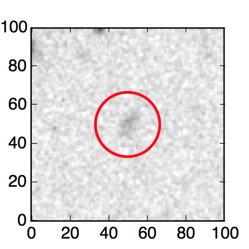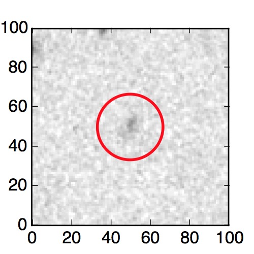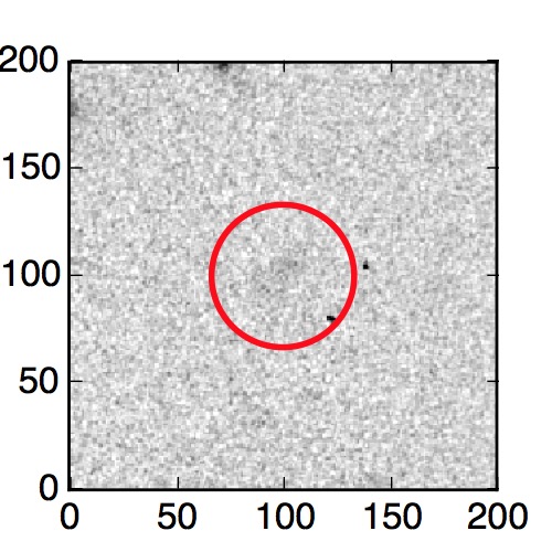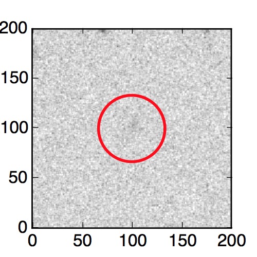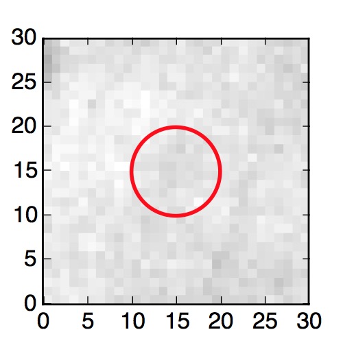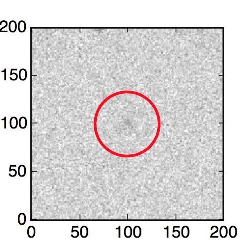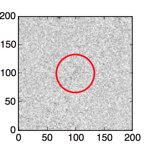 The red circle in the various panels is 1" in radius. The images are 6"x6".