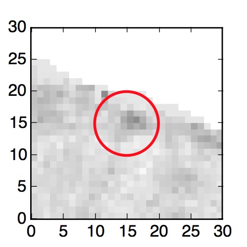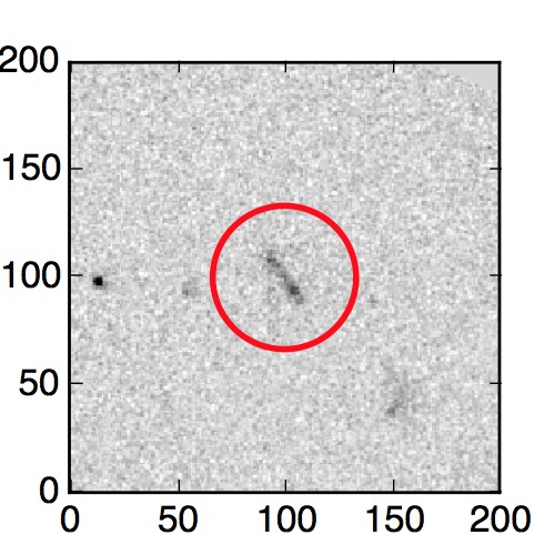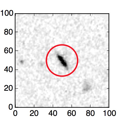 The red circle in the various panels is 1" in radius. The images are 6"x6".