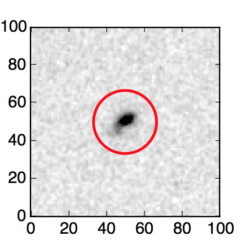 The red circle in the various panels is 1" in radius. The images are 6"x6".