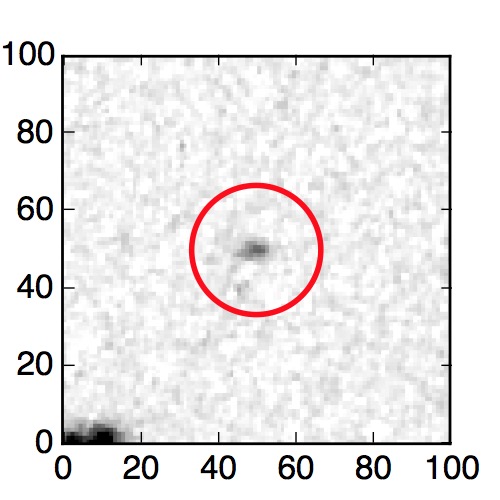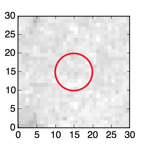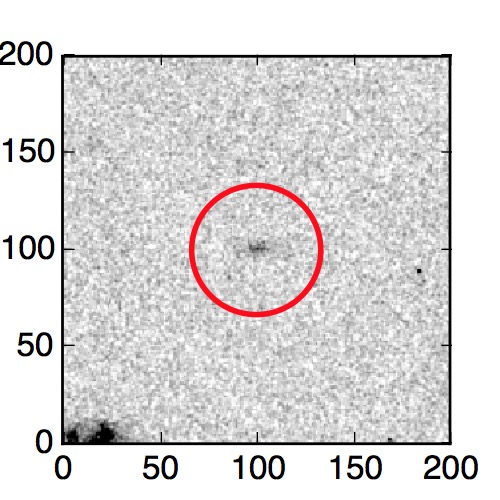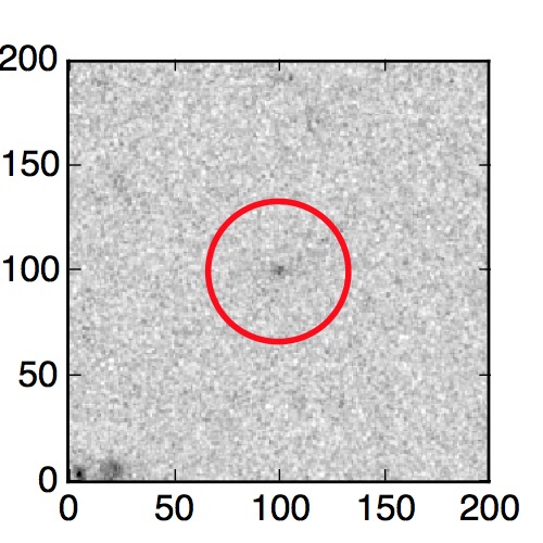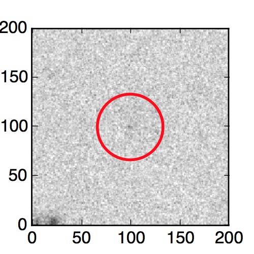 The red circle in the various panels is 1" in radius. The images are 6"x6".