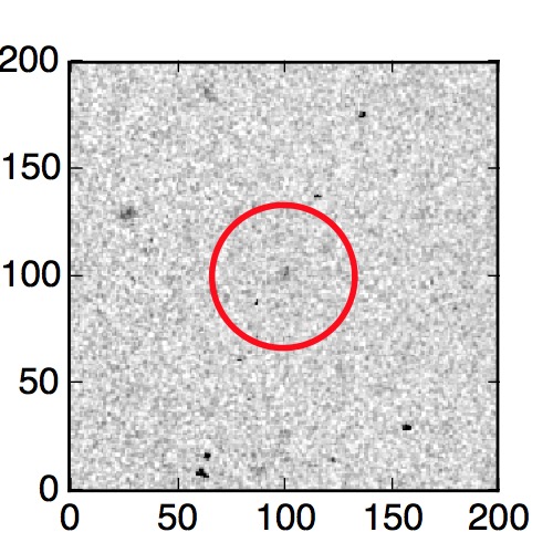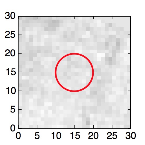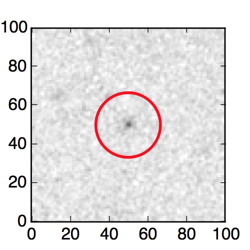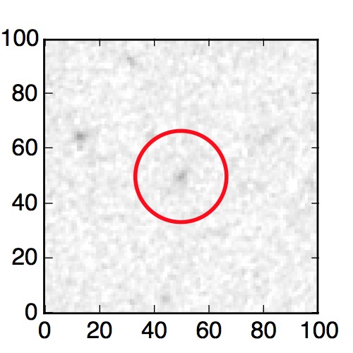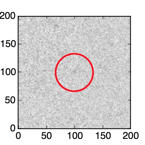 The red circle in the various panels is 1" in radius. The images are 6"x6".