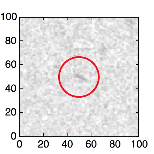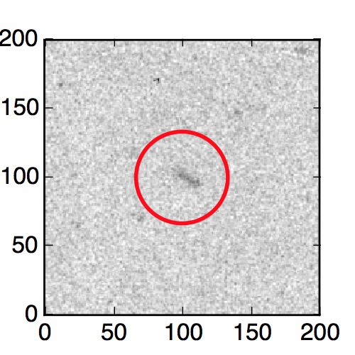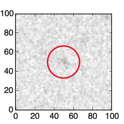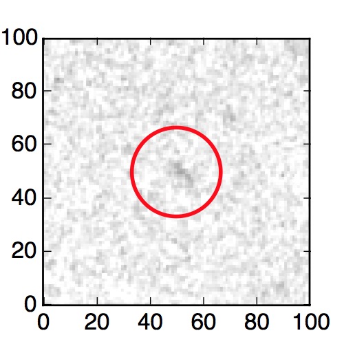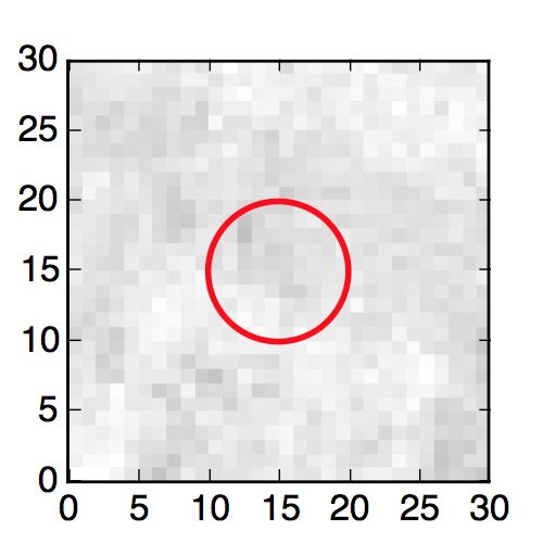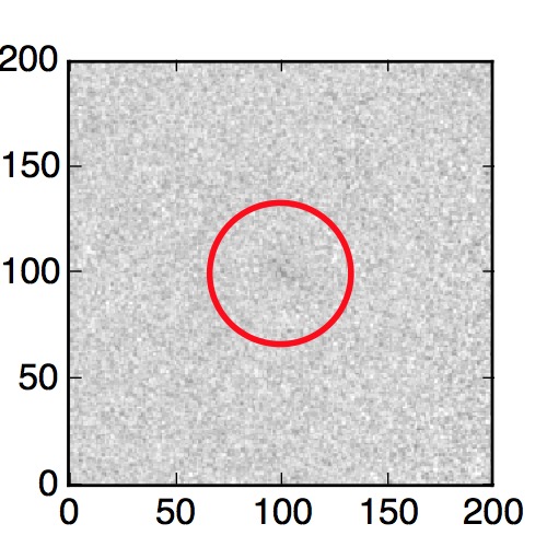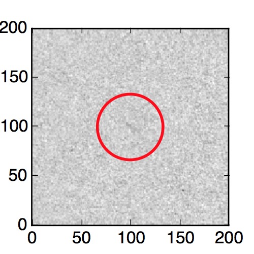 The red circle in the various panels is 1" in radius. The images are 6"x6".