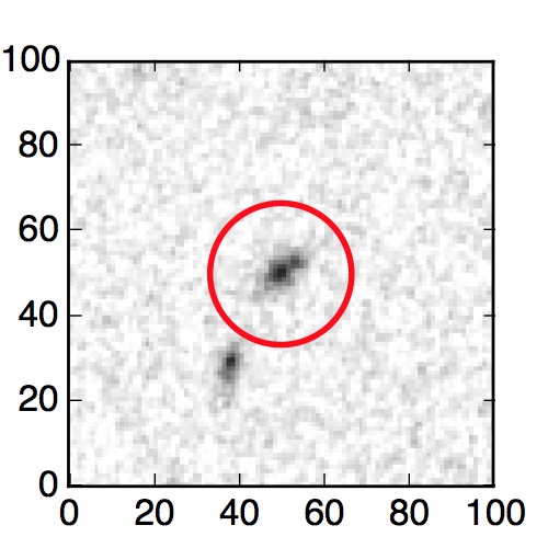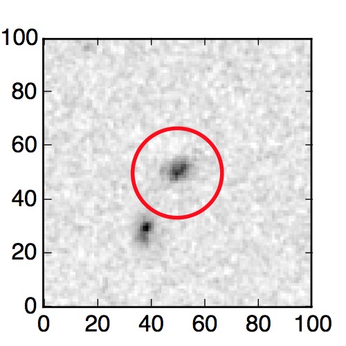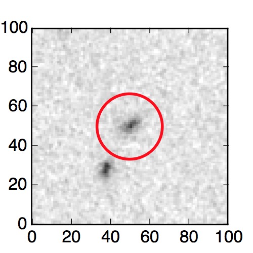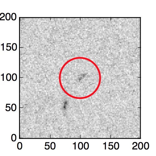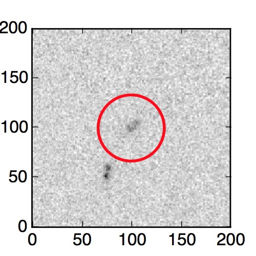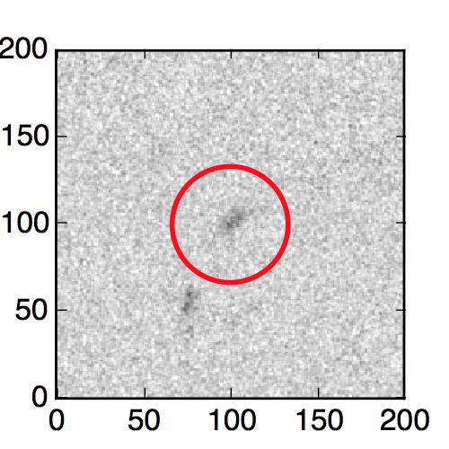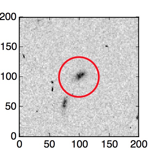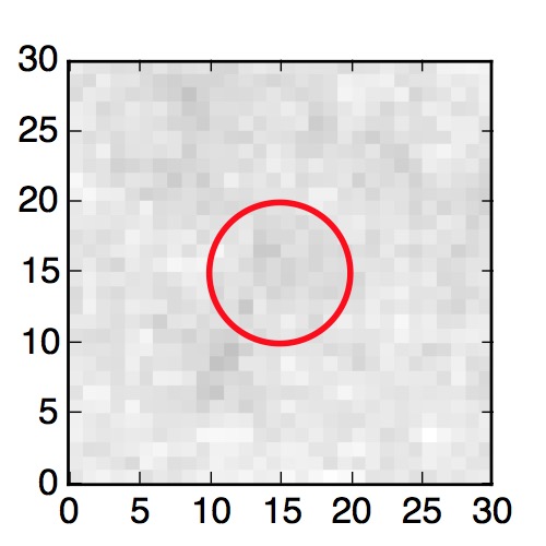 The red circle in the various panels is 1" in radius. The images are 6"x6".