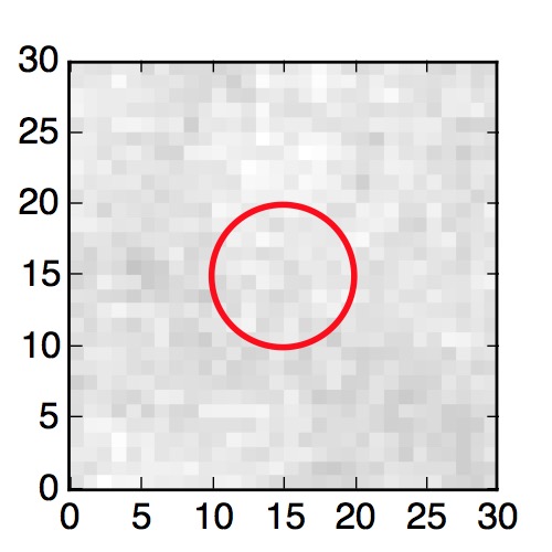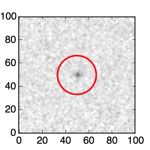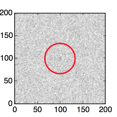 The red circle in the various panels is 1" in radius. The images are 6"x6".