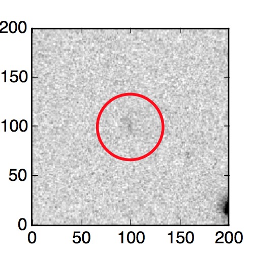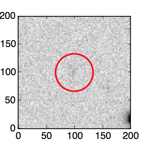 The red circle in the various panels is 1" in radius. The images are 6"x6".