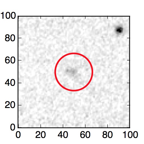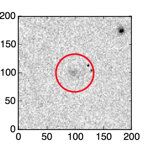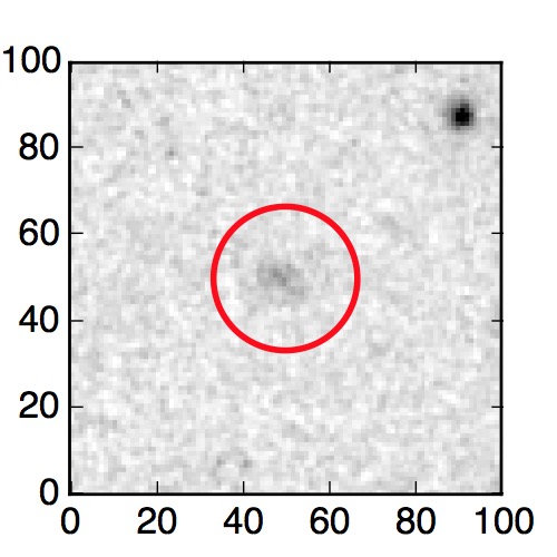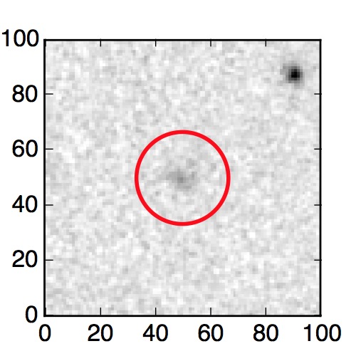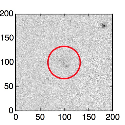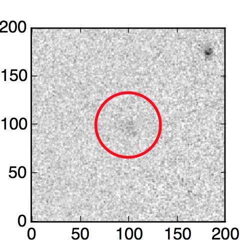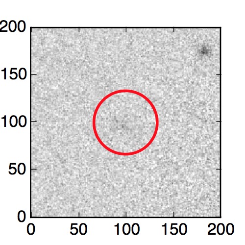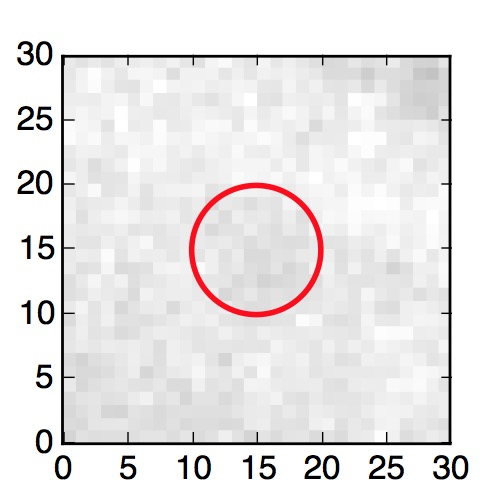 The red circle in the various panels is 1" in radius. The images are 6"x6".