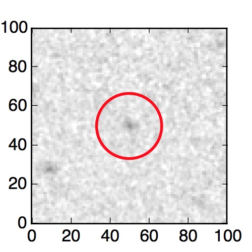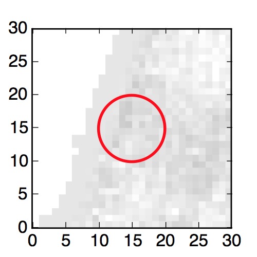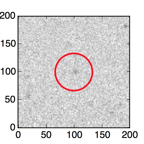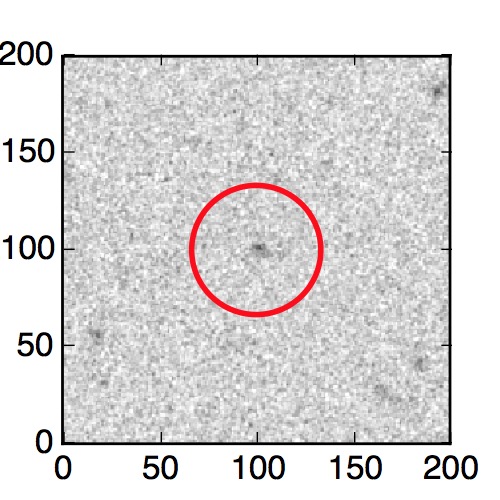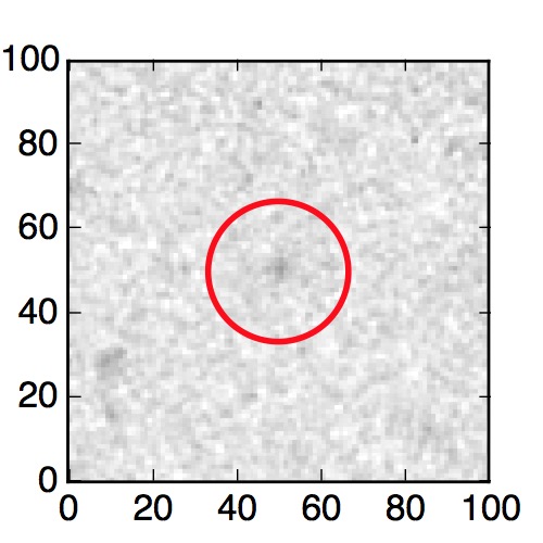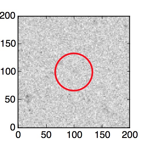 The red circle in the various panels is 1" in radius. The images are 6"x6".