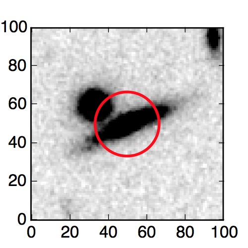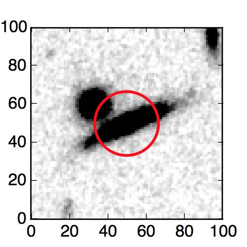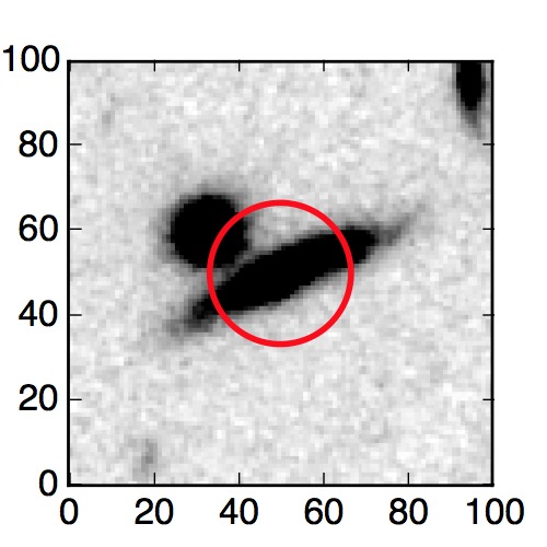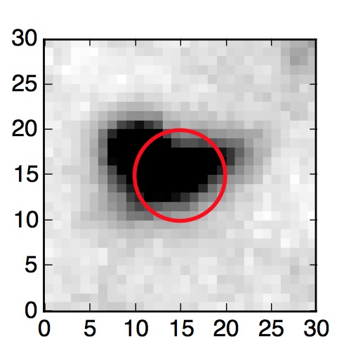 The red circle in the various panels is 1" in radius. The images are 6"x6".