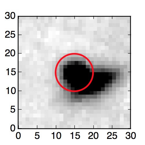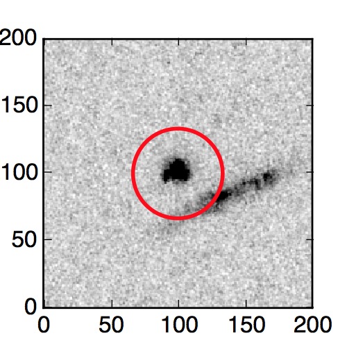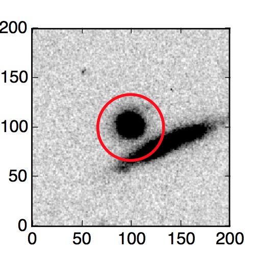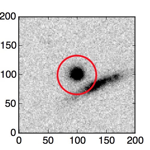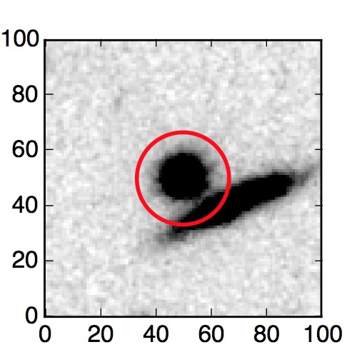 The red circle in the various panels is 1" in radius. The images are 6"x6".
