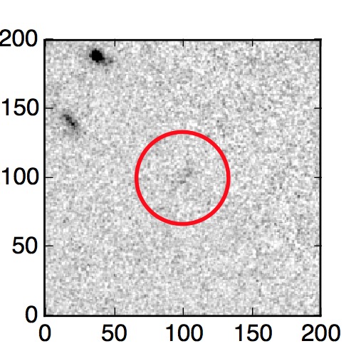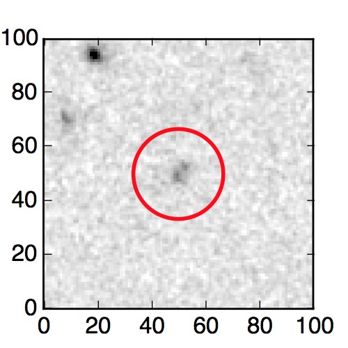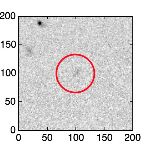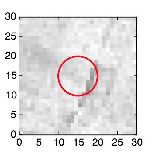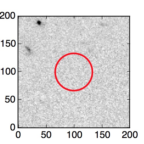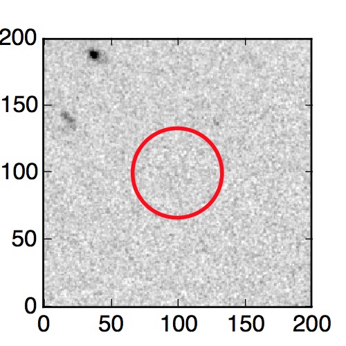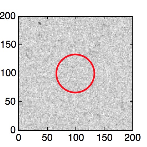 The red circle in the various panels is 1" in radius. The images are 6"x6".