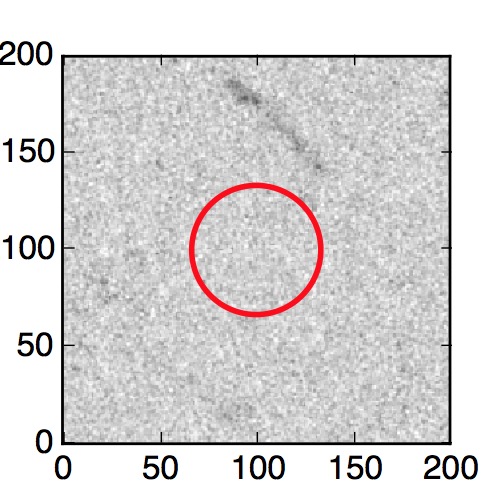 The red circle in the various panels is 1" in radius. The images are 6"x6".