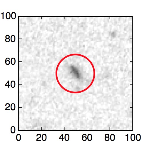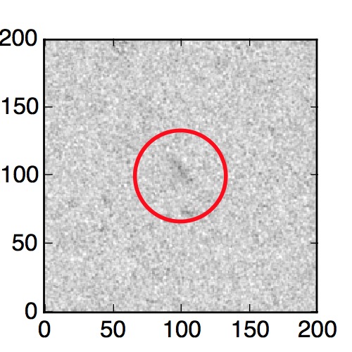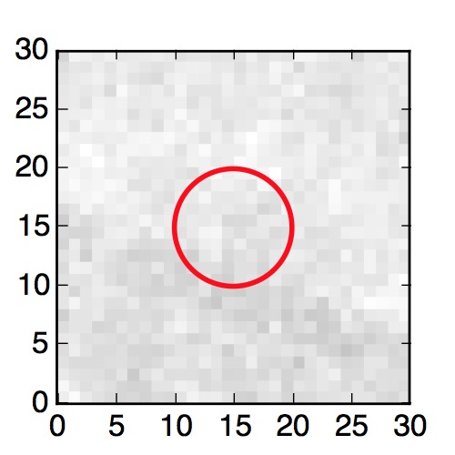 The red circle in the various panels is 1" in radius. The images are 6"x6".