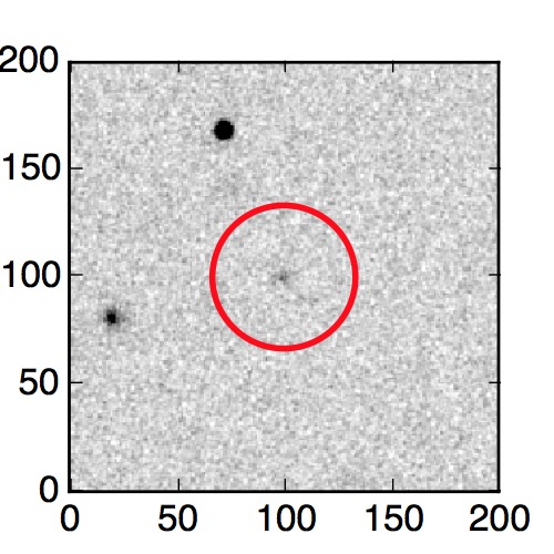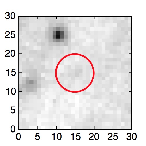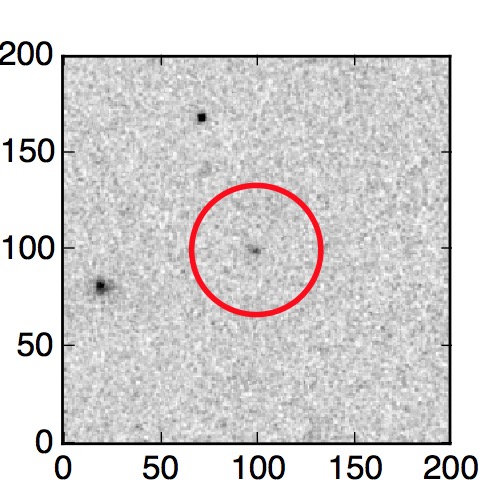 The red circle in the various panels is 1" in radius. The images are 6"x6".