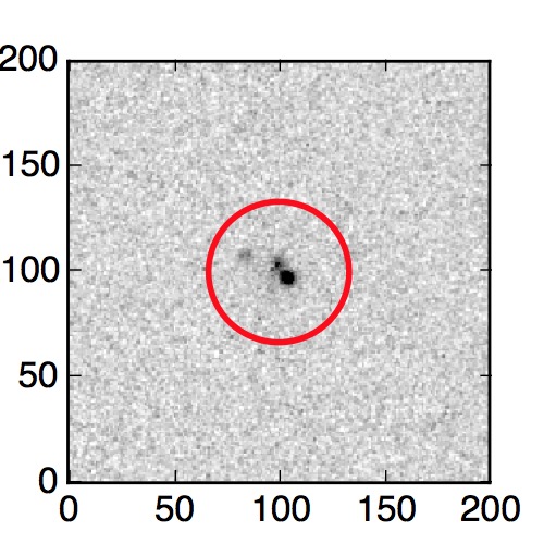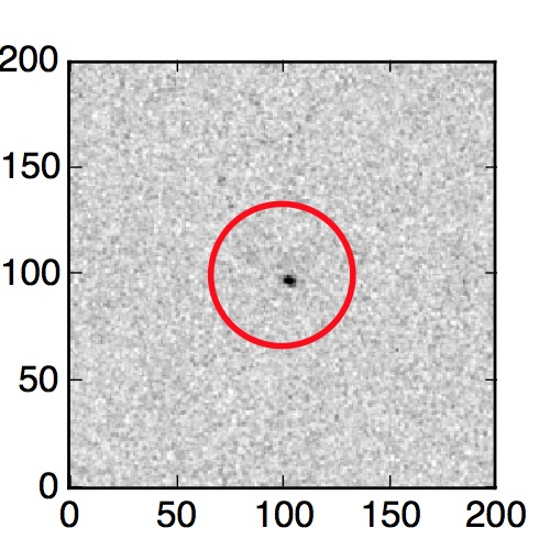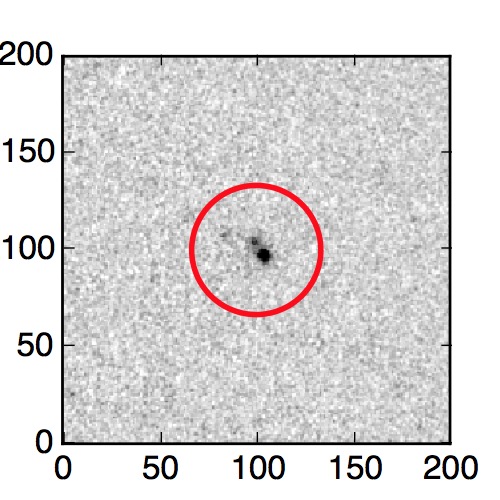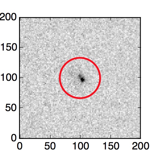 The red circle in the various panels is 1" in radius. The images are 6"x6".