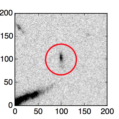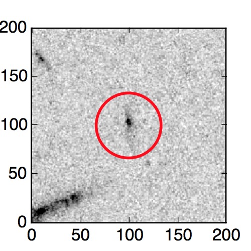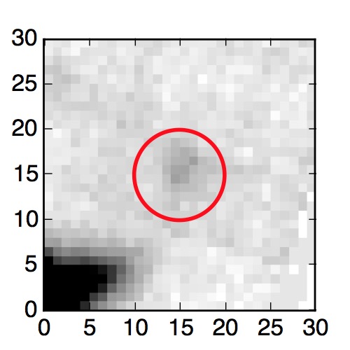 The red circle in the various panels is 1" in radius. The images are 6"x6".