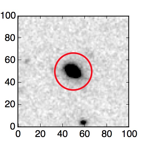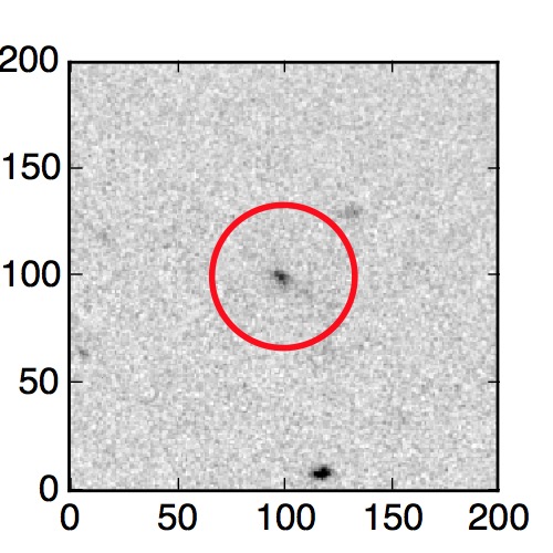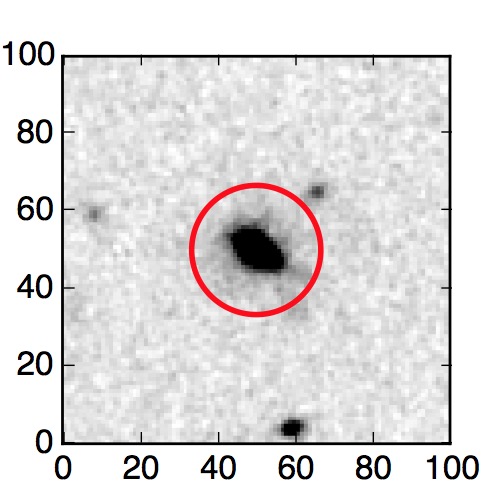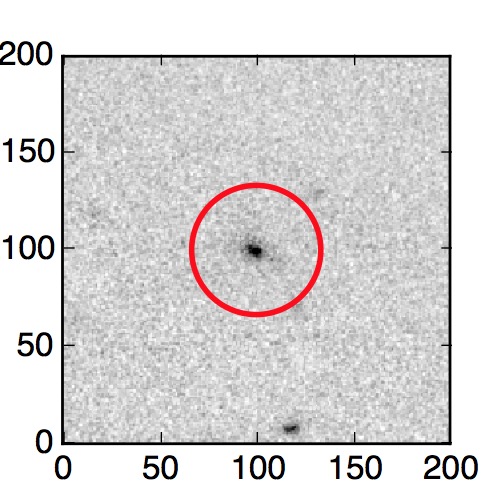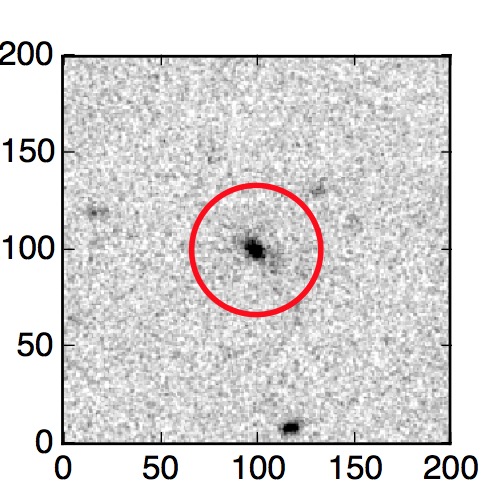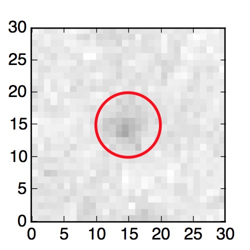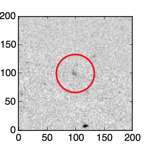 The red circle in the various panels is 1" in radius. The images are 6"x6".