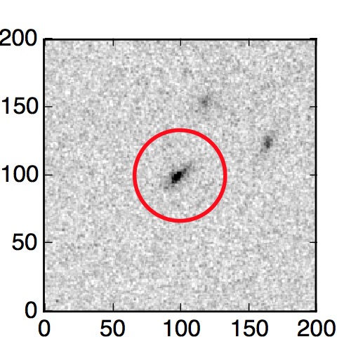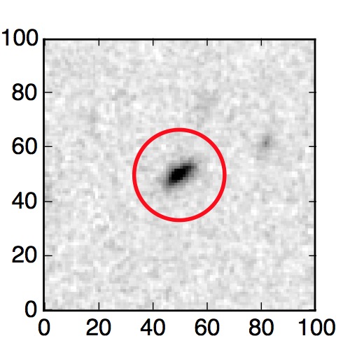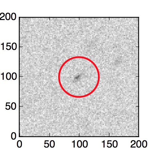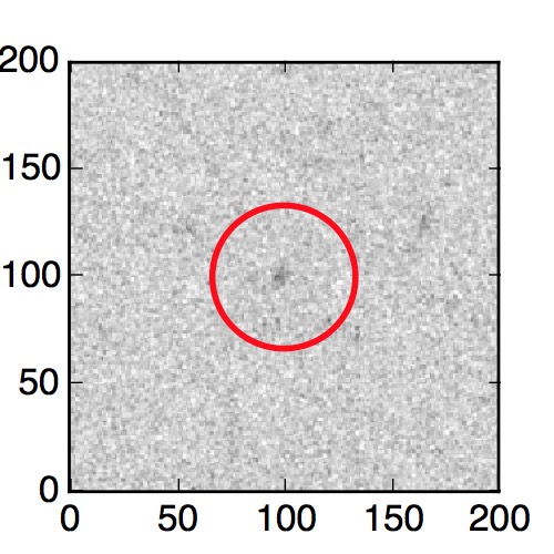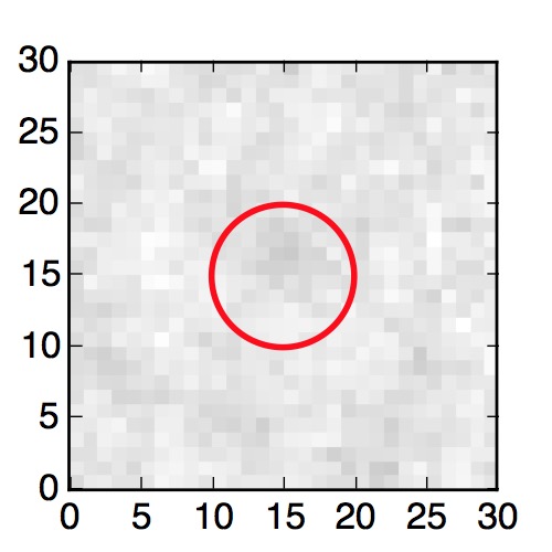 The red circle in the various panels is 1" in radius. The images are 6"x6".