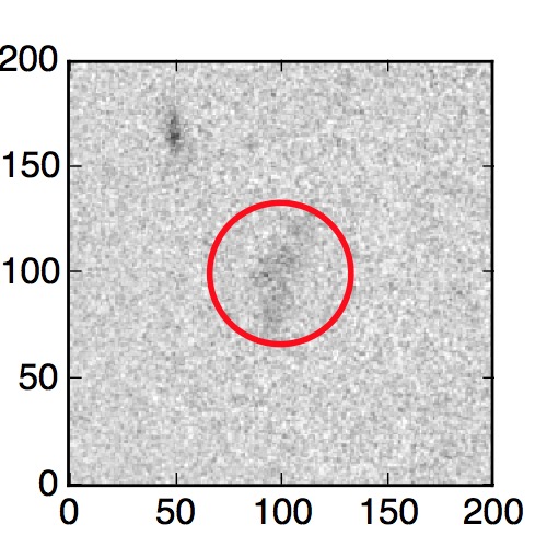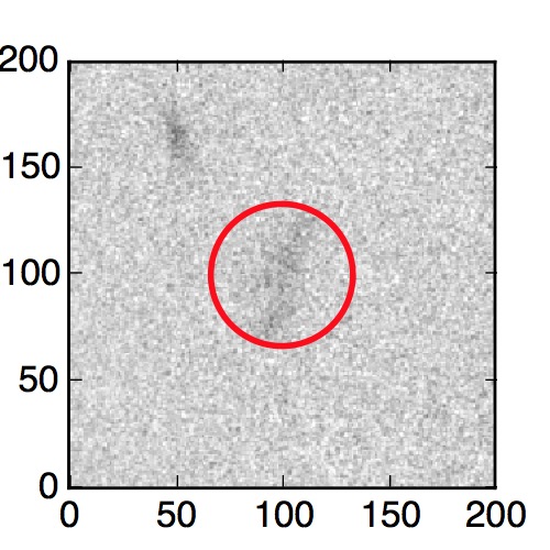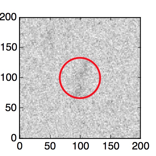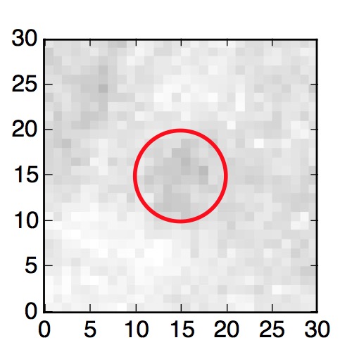 The red circle in the various panels is 1" in radius. The images are 6"x6".