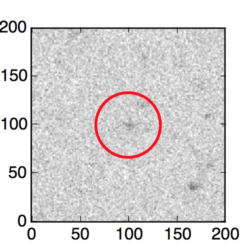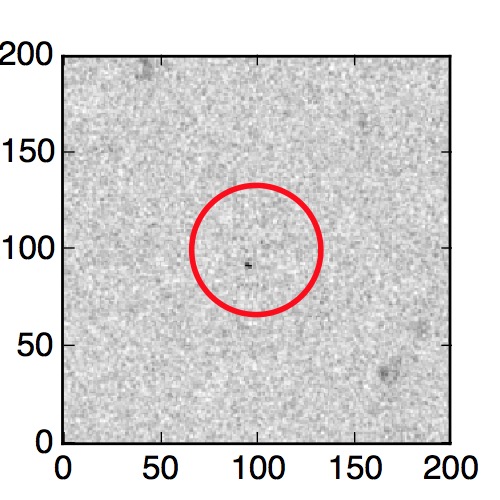 The red circle in the various panels is 1" in radius. The images are 6"x6".