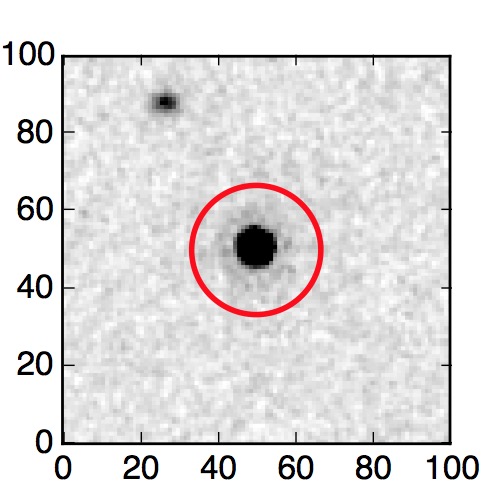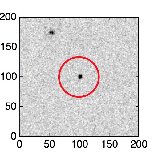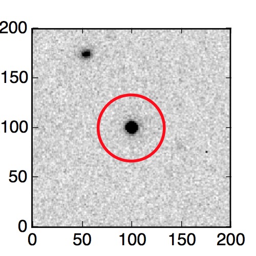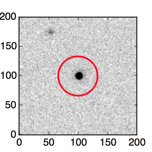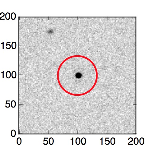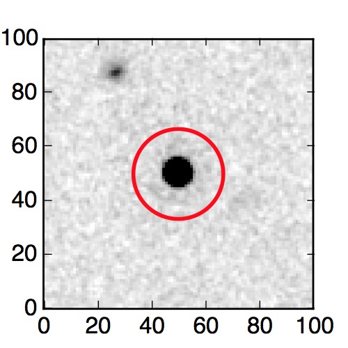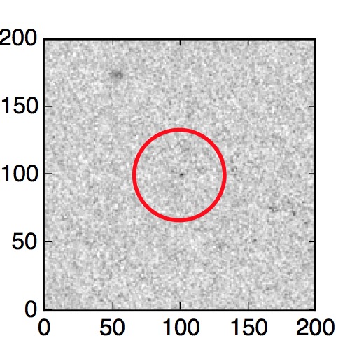 The red circle in the various panels is 1" in radius. The images are 6"x6".