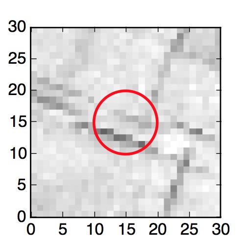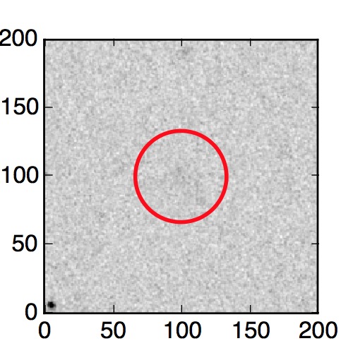 The red circle in the various panels is 1" in radius. The images are 6"x6".
