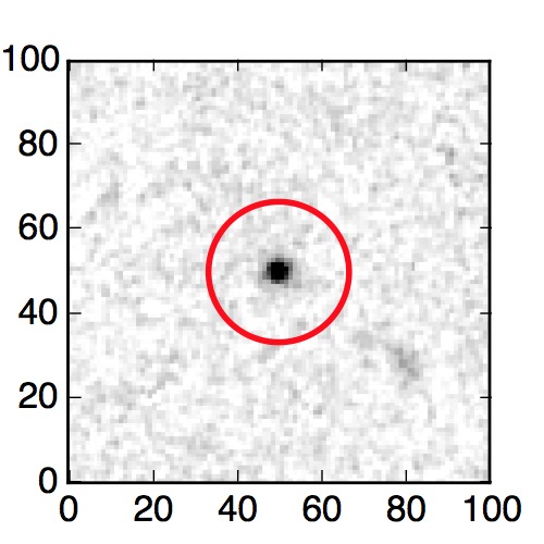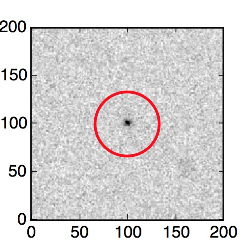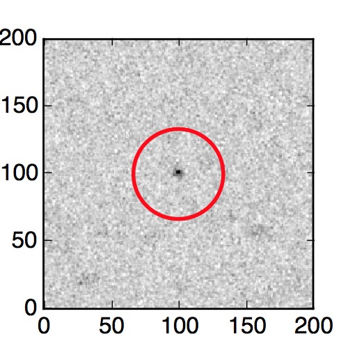 The red circle in the various panels is 1" in radius. The images are 6"x6".