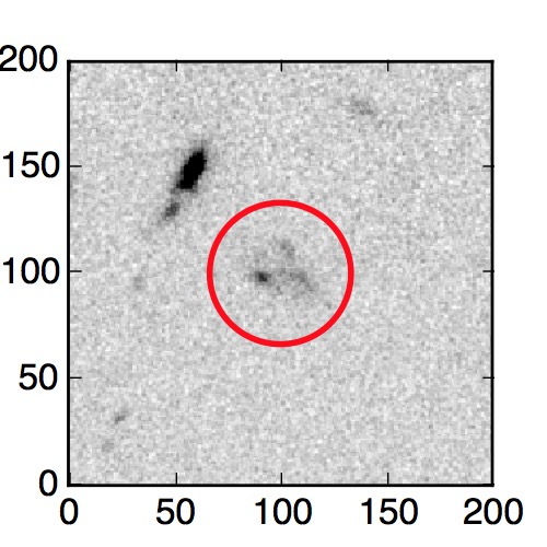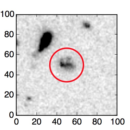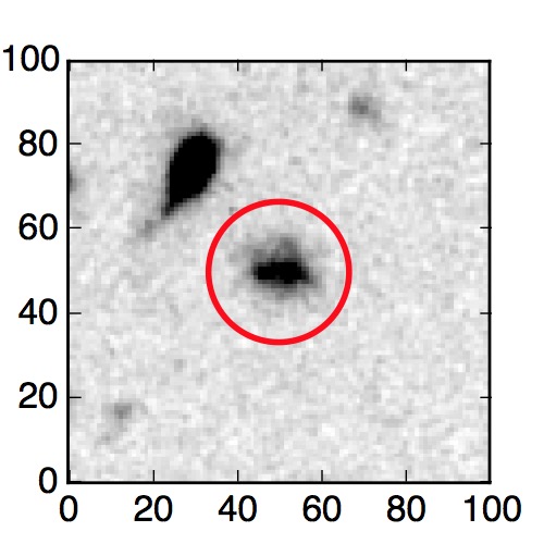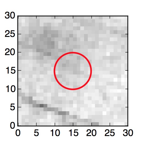 The red circle in the various panels is 1" in radius. The images are 6"x6".