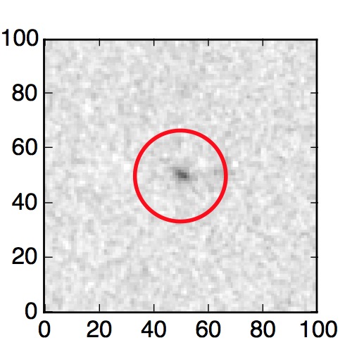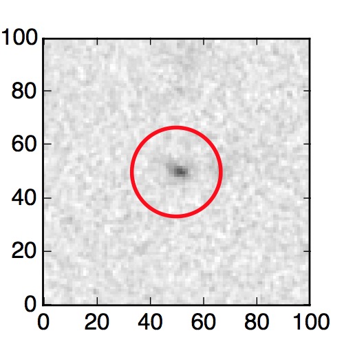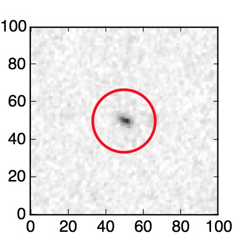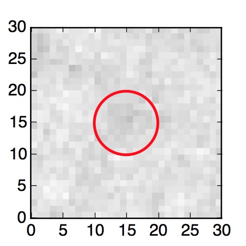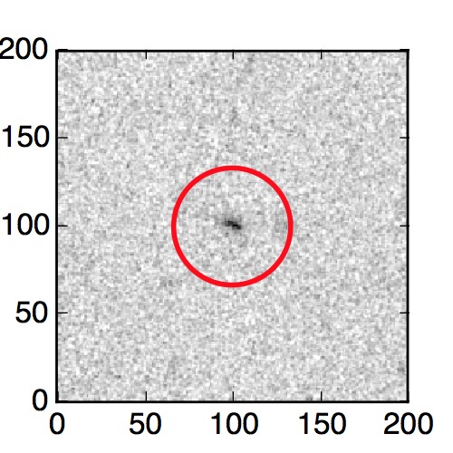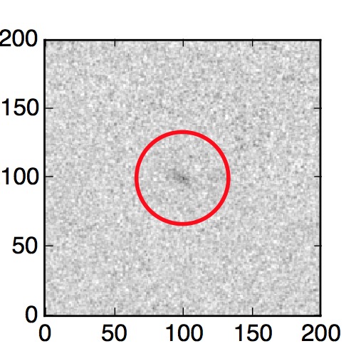 The red circle in the various panels is 1" in radius. The images are 6"x6".