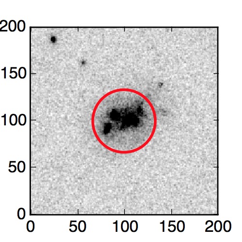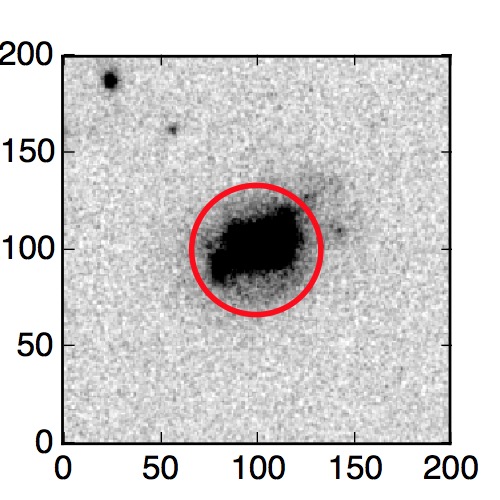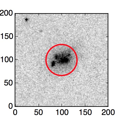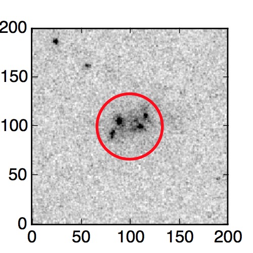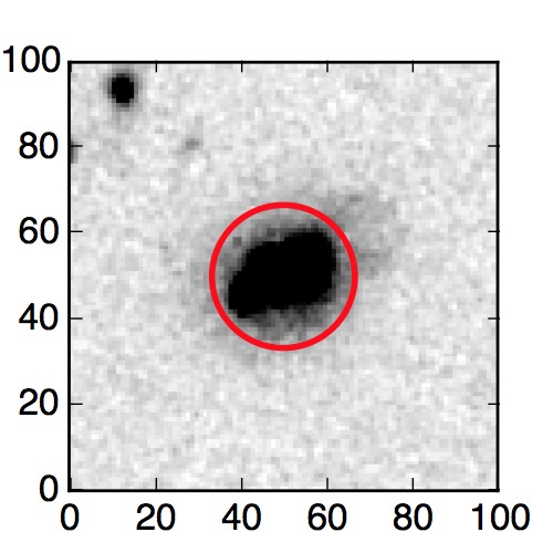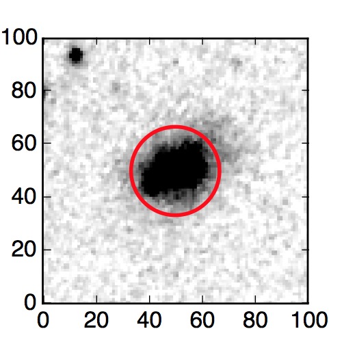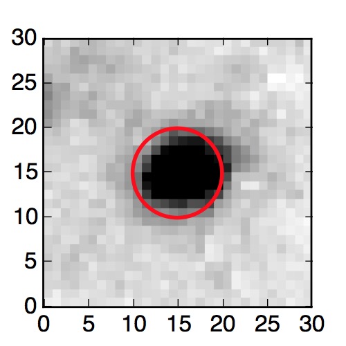 The red circle in the various panels is 1" in radius. The images are 6"x6".