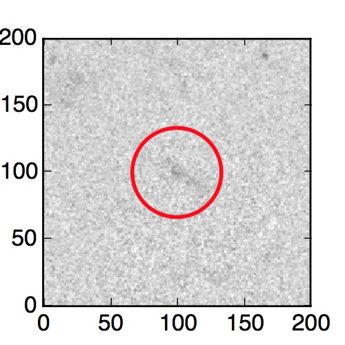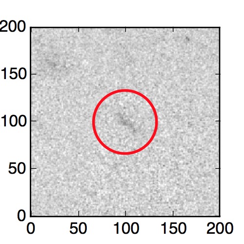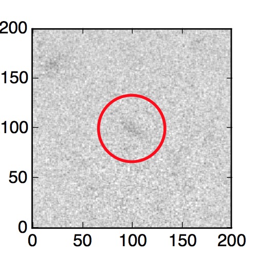 The red circle in the various panels is 1" in radius. The images are 6"x6".