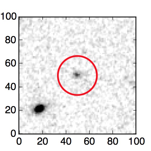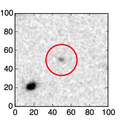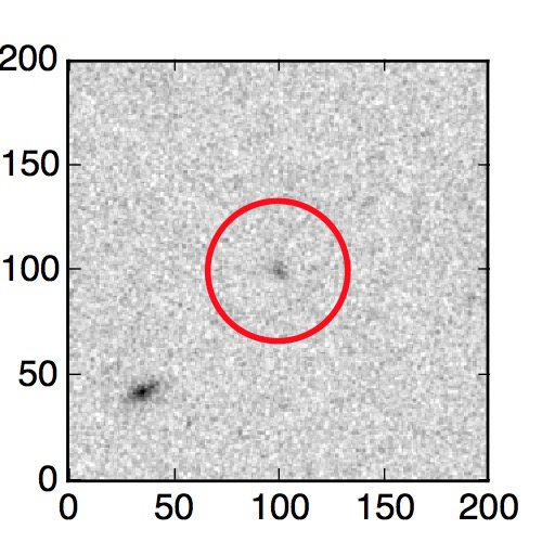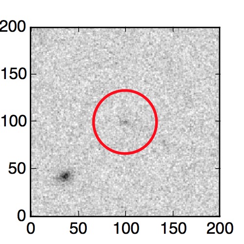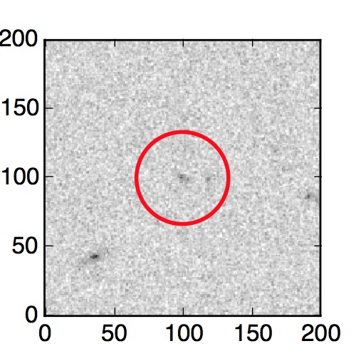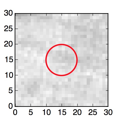 The red circle in the various panels is 1" in radius. The images are 6"x6".