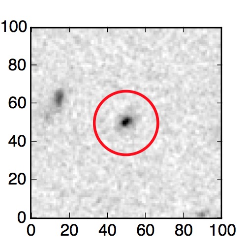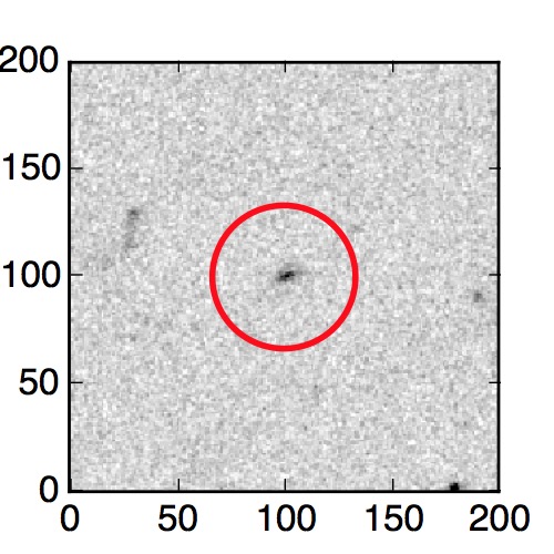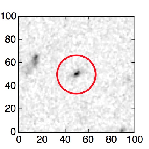 The red circle in the various panels is 1" in radius. The images are 6"x6".