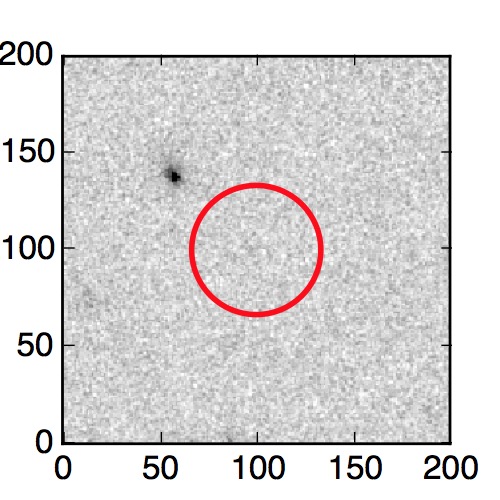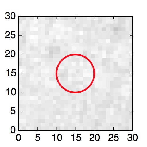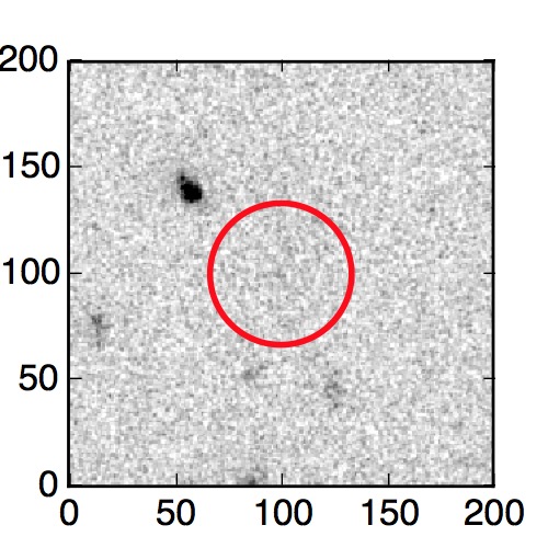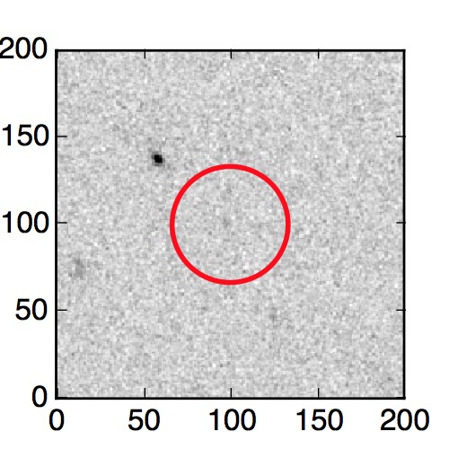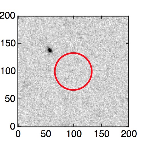 The red circle in the various panels is 1" in radius. The images are 6"x6".