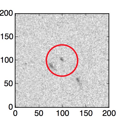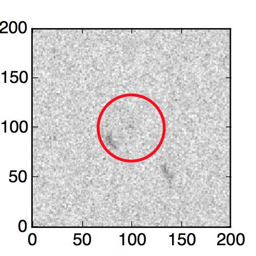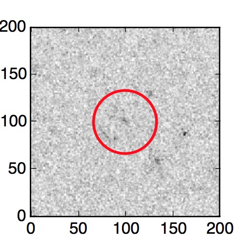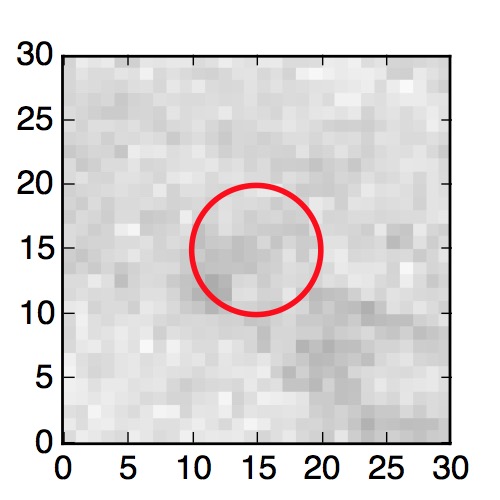 The red circle in the various panels is 1" in radius. The images are 6"x6".
