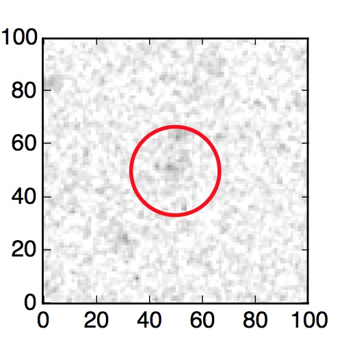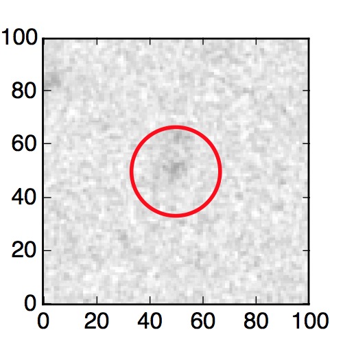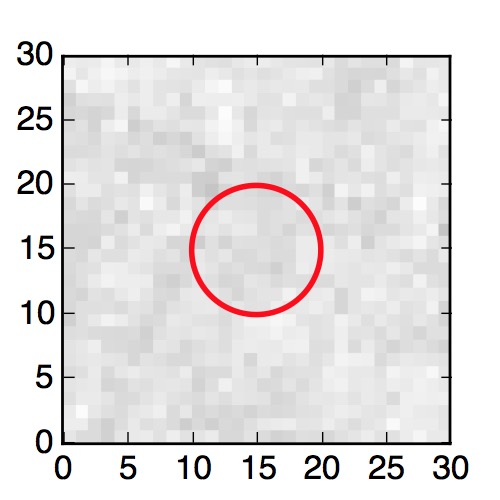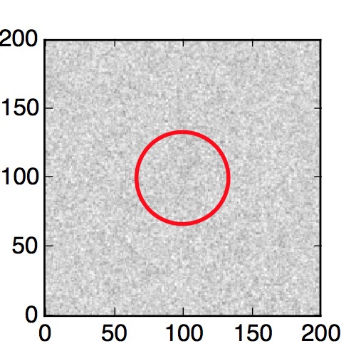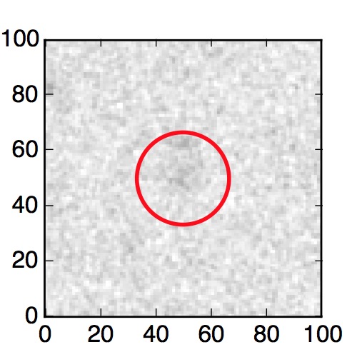 The red circle in the various panels is 1" in radius. The images are 6"x6".