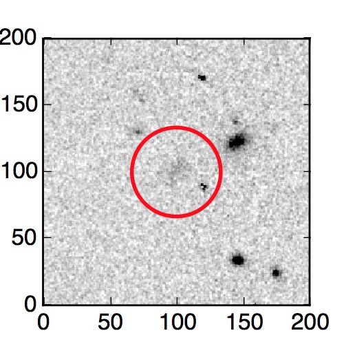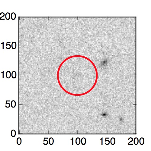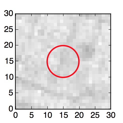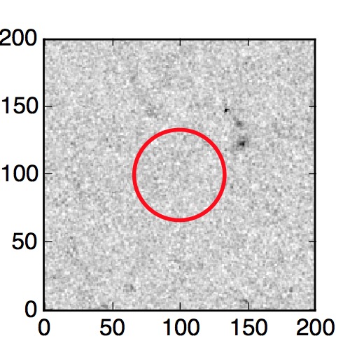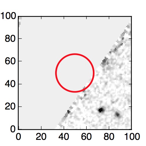 The red circle in the various panels is 1" in radius. The images are 6"x6".