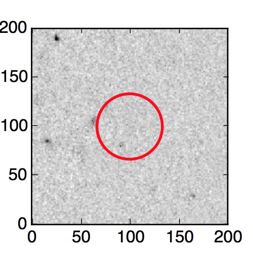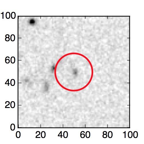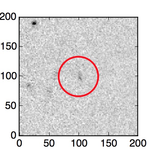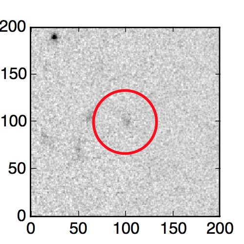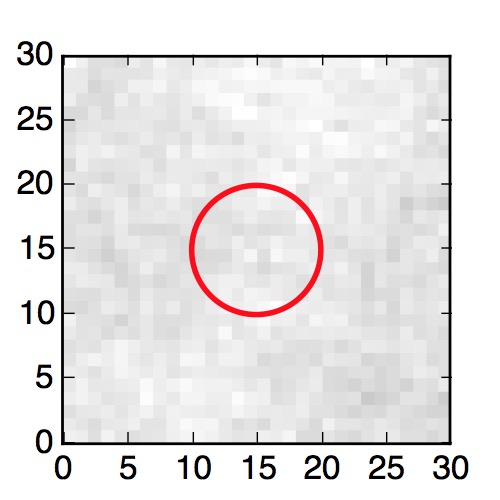 The red circle in the various panels is 1" in radius. The images are 6"x6".
