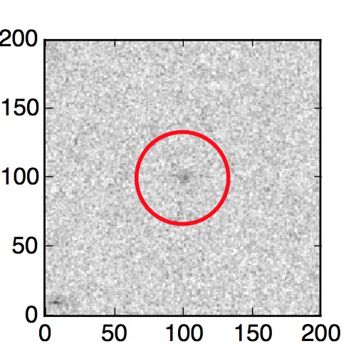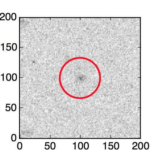 The red circle in the various panels is 1" in radius. The images are 6"x6".
