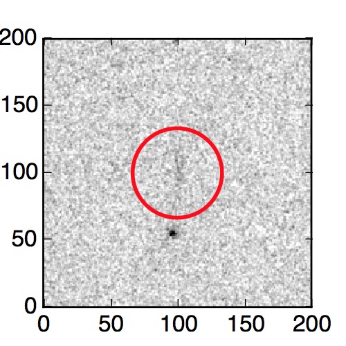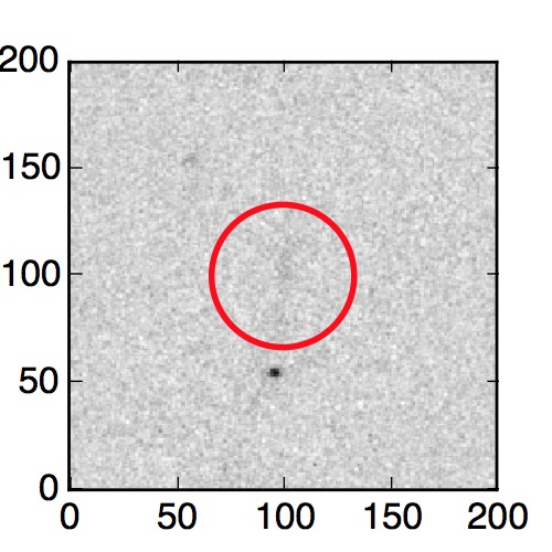 The red circle in the various panels is 1" in radius. The images are 6"x6".