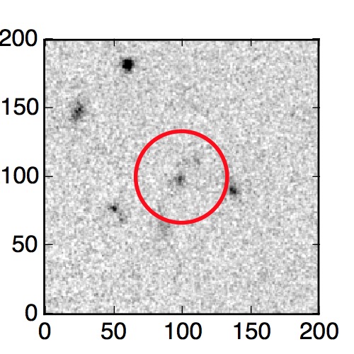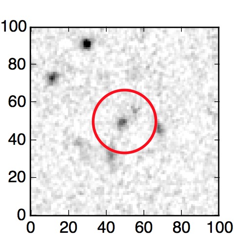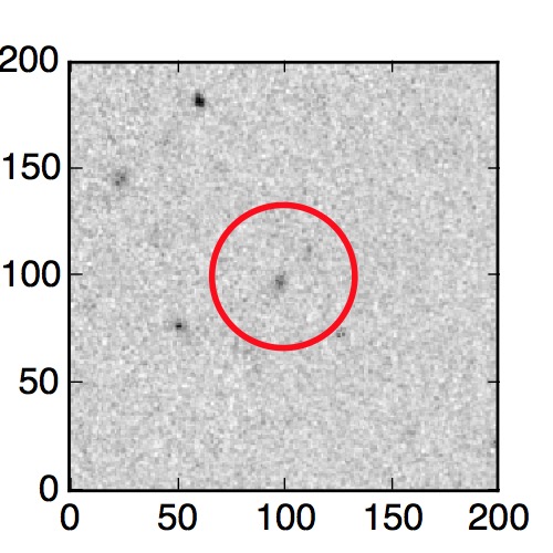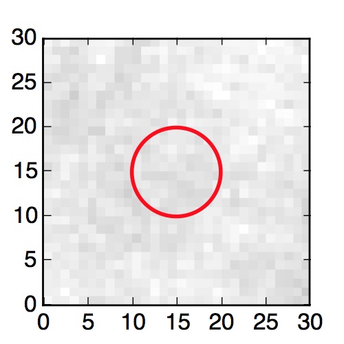The red circle in the various panels is 1" in radius. The images are 6"x6".