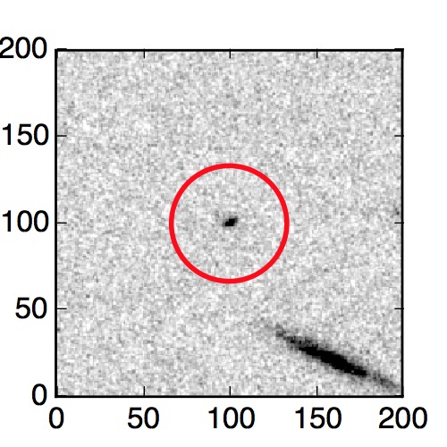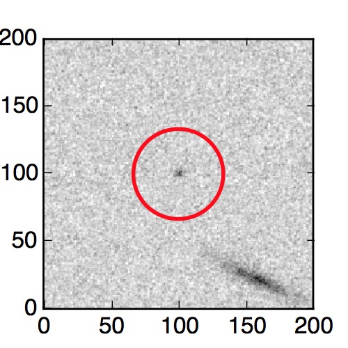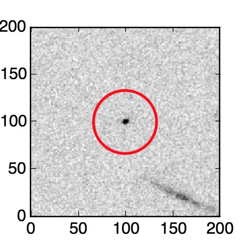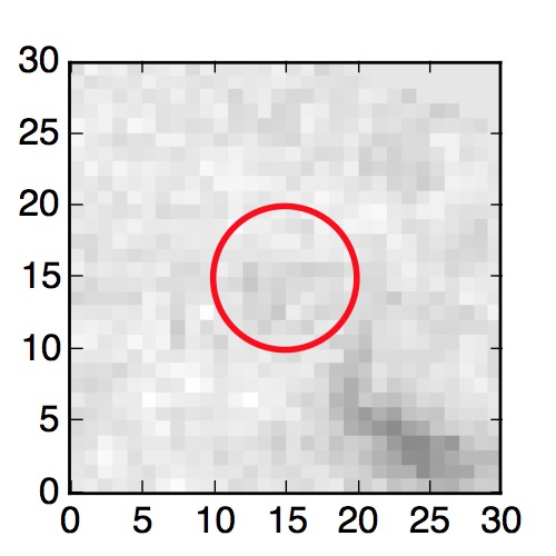 The red circle in the various panels is 1" in radius. The images are 6"x6".