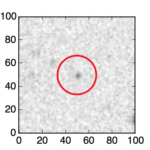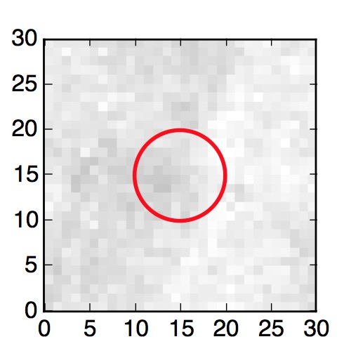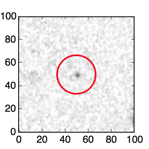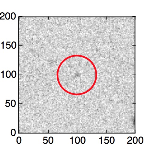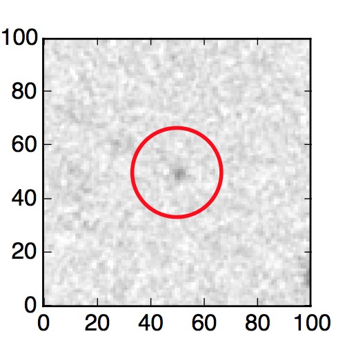 The red circle in the various panels is 1" in radius. The images are 6"x6".